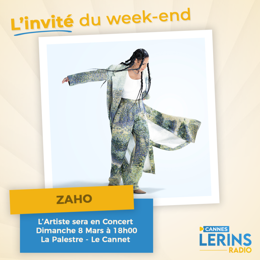 Dans l'émission l'invité du week-end, Loric reçoit l'Artiste ZAHO en tournée actuellement dans toute la France, elle sera en concert à la Palestre Le Cannet ce dimanche 8 Mars à 18h00.  Zaho sortira le 3 avril son 5 ème Album intitulé "Versatile" avec notamment un Feat MC SOLAAR "Comme Caroline" déjà disponible. Présentation et questions / réponses sont au programme de cet interview.