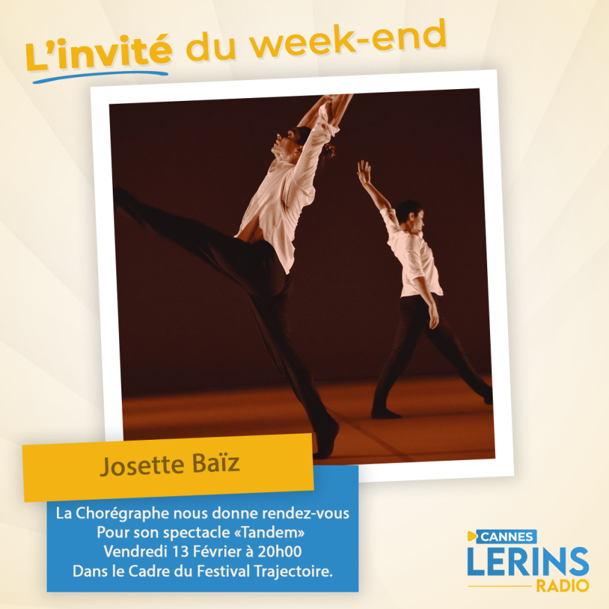 Dans l'émission l'invité du week-end, Loric reçoit la Chorégraphe Josette Baïz pour le spectacle "Tandem" qui se tiendra le vendredi 13 février à 20h dans le cadre du festival "Trajectoire". Présentation et questions / réponses sont au programme de cet interview.
